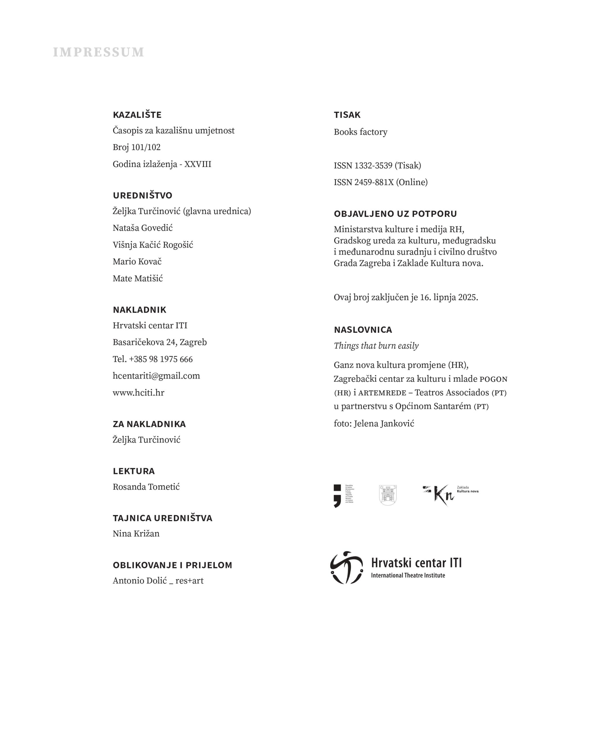 Uredništvo: Nataša Govedić, Višnja Kačić Rogošić, Mario Kovač, Mate Matišić, Željka Turčinović (glavna urednica)